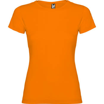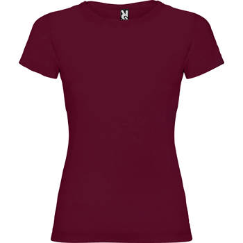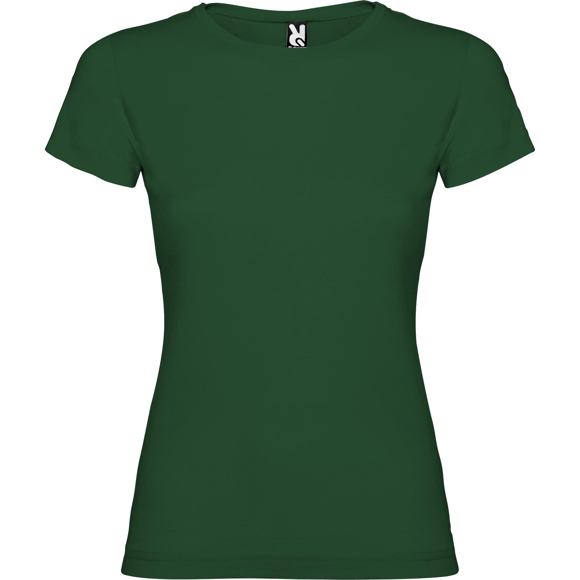 Camiseta de manga corta entallada, con cuello redondo doble acanalado 1×1, cubre costuras reforzado en cuello y hombros, costuras laterales.