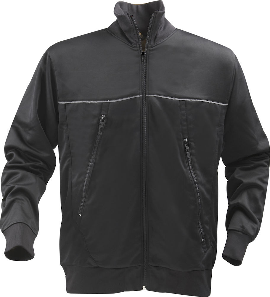 Chaqueta deportiva con 2 bolsillos frontales y cremallera con 2 sentidos, forro de malla en contraste y elastico en el cuello, bajo y mangas.