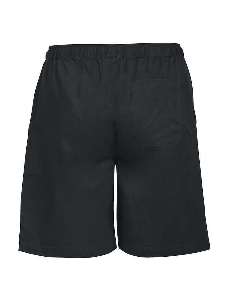 Pantalón corto con elástico y cordón en la cintura, 2 bolsillos a los lados y uno trasero.