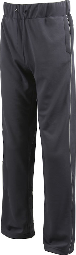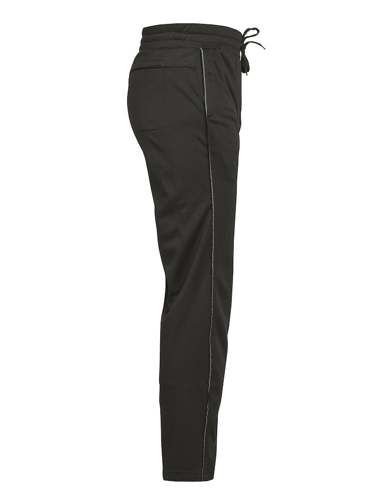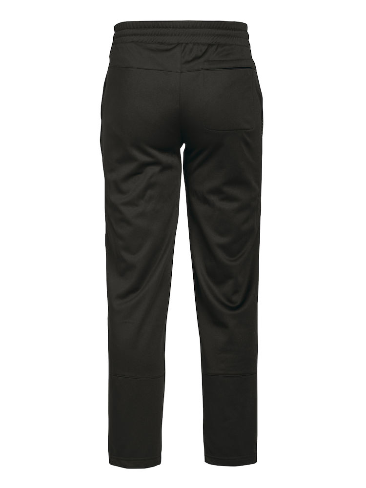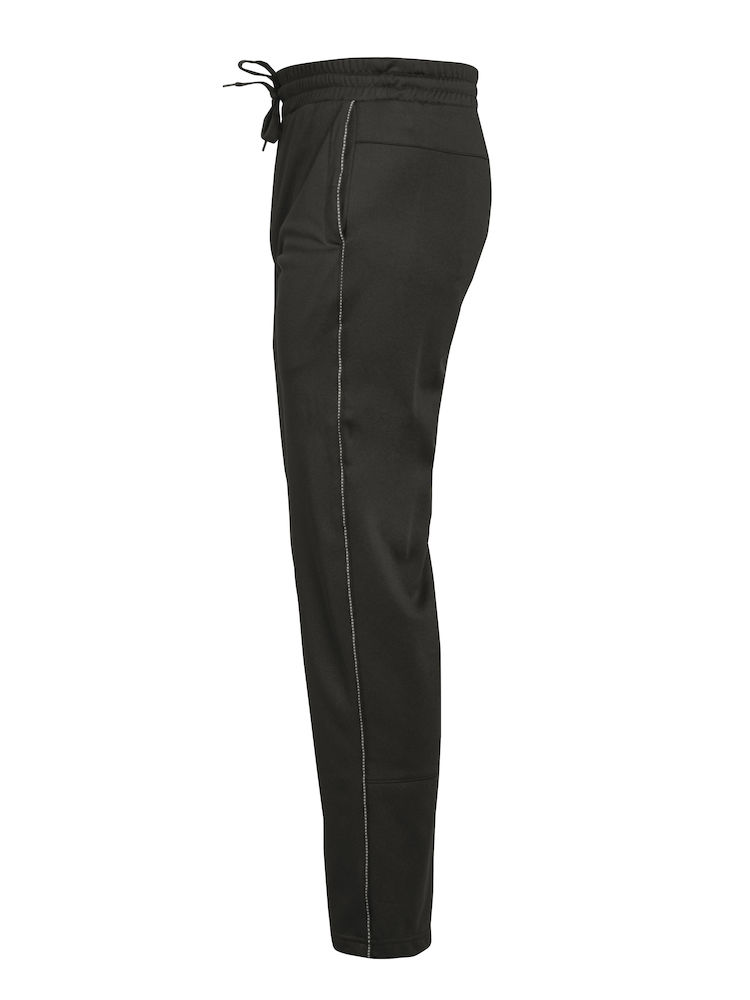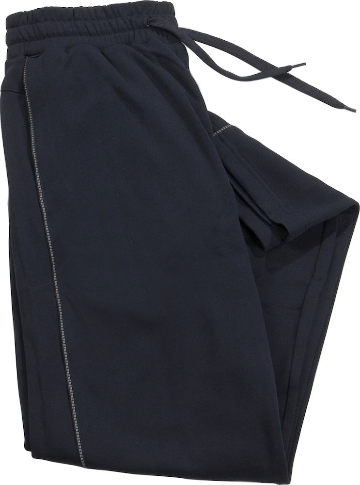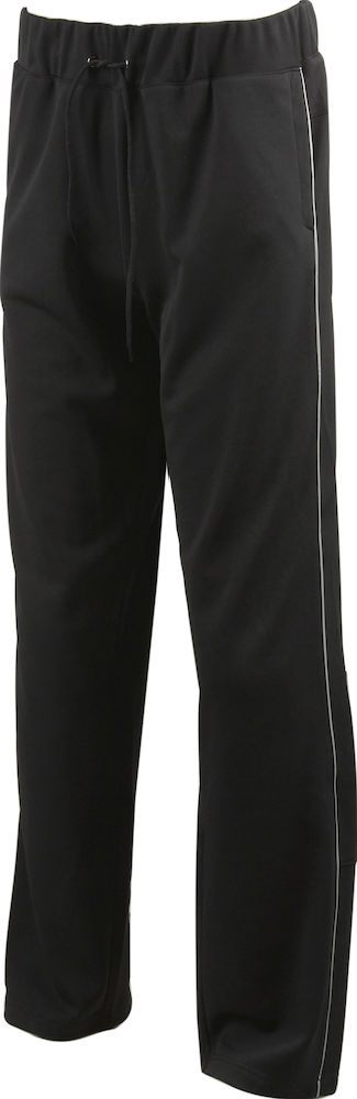 Pantalones deportivos con elástico y cinta ajustable en la cintura. Dos bolsillos frontales y uno en la parte de atrás con cremallera. Cordón reflectante en las costuras laterales.