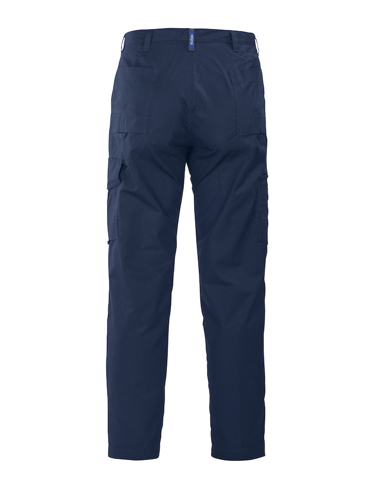 Pantalón recto sin pinzas. Dos bolsillos laterales, dos traseros y un bolsillo lateral con cierre de cremallera en el lado derecho. Dos ”cargo pockets” el izquierdo tiene tapeta y un pequeño bolsillo para el móvil y en el derecho hay compartimentos externos para bolígrafo, documentos y metro. En la cintura lleva dos anillas para colgar llaves. Bolsillos interiores para la protección de las rodillas. Trabillas para colgar nuestros Inbags debajo de los bolsillos traseros y los ”cargo pockets”.