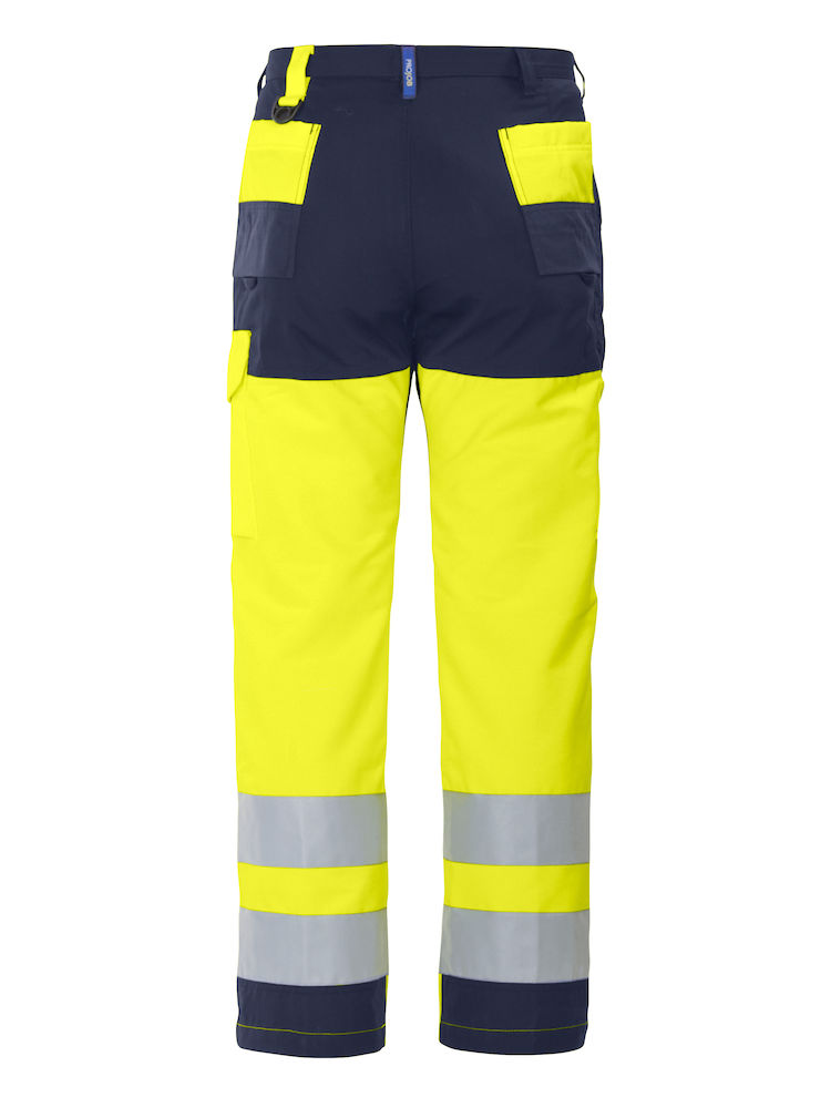 Pantalón recto sin pinzas. Dos bolsillos laterales y uno interior lateral con cierre de cremallera en el lado derecho. Dos bolsillos tipo “cargo pockets” con espacio exterior para el móvil, bolígrafo y metro. Reforzados de poliamida en la abertura de los bolsillos laterales, la parte baja de los traseros y los “cargo pockets” y la parte baja detrás de las piernas. Bolsillos protectores para las rodillas. Los bolsillos traseros y los “cargo pockets” llevan trabillas para adaptar nuestros Inbags. Clase 2.