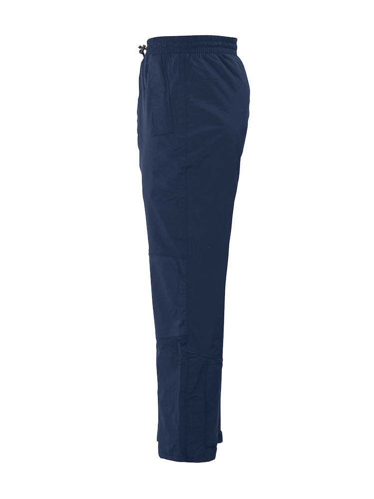 Pantalones resistentes a viento y agua con tapa costuras. Cordón elástico en cintura. Dos bolsillos laterales con cremallera, refuerzo en rodillas y abertura con cremallera al final de la pierna.